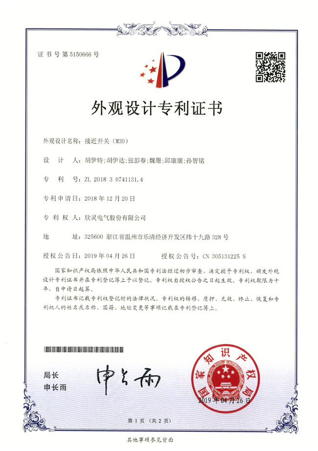 614【專利證書】接近開關(guān)(M30)(外觀)