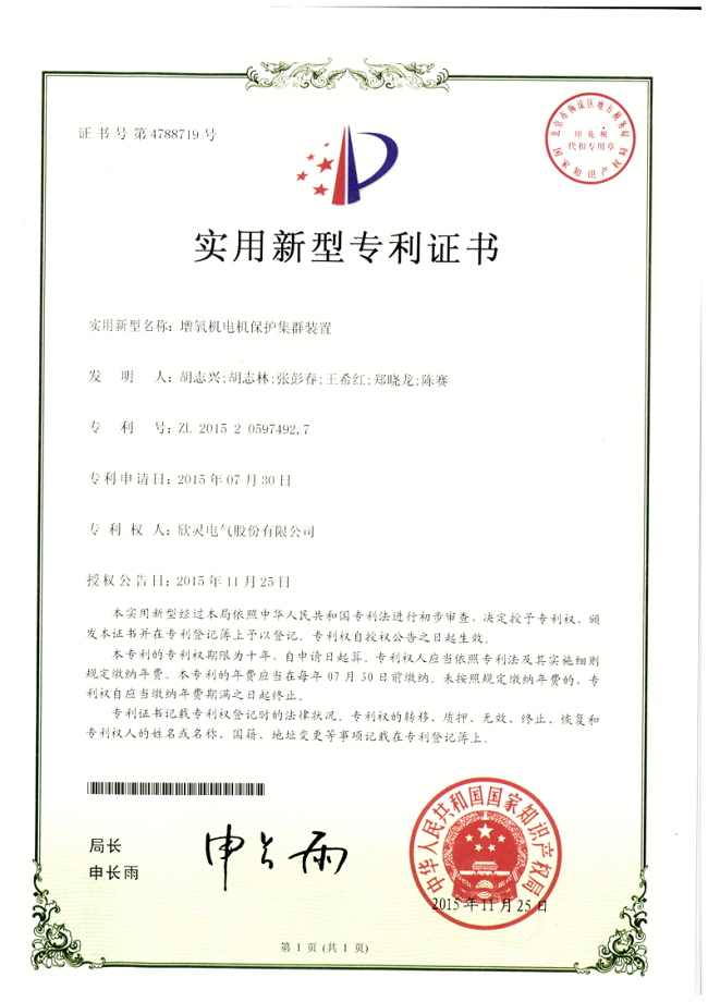 【專利證書】增氧機(jī)電機(jī)保護(hù)集群裝置(實(shí)用)