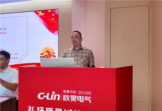 10月9日,欣靈電氣股份有限公司以“弘揚(yáng)質(zhì)量誠信文化,促進(jìn)質(zhì)量強(qiáng)企建設(shè)”為主題的2025年度“質(zhì)量月”活動(dòng)啟動(dòng)會(huì)在浦南五路新廠區(qū)隆重舉行。董事長胡志興、副董事長胡志林、總經(jīng)理張彭春、副總經(jīng)理胡伊特、電力電子事業(yè)部總裁邱文輝、總經(jīng)理助理劉鳳嬌等領(lǐng)導(dǎo)出席,會(huì)議由總經(jīng)理助理兼質(zhì)量中心總監(jiān)李永方主持。