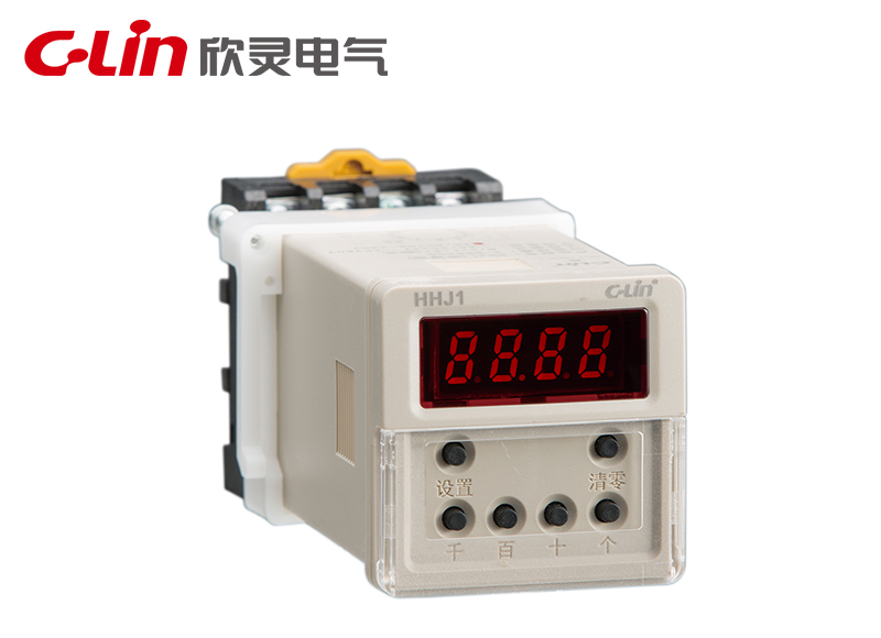 HHJ1(改進(jìn)型)數(shù)顯計數(shù)繼電器(以下簡稱計數(shù)器)適用于交流50/60Hz,額定工作電壓380V及以下或直流工作電壓24V的控制電路中作計數(shù)元件,按預(yù)置的數(shù)字接通或分?jǐn)嚯娐贰?
